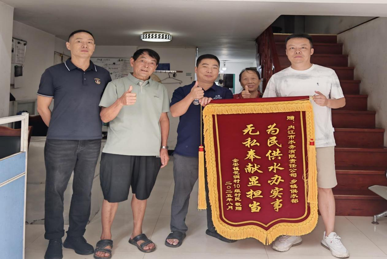 8月25日,花洞村五組村民代表將一面印有“為民供水辦實(shí)事 無私奉獻(xiàn)顯擔(dān)當(dāng)”的錦旗贈予鄉(xiāng)鎮(zhèn)供水部,以此表達(dá)對部門高效、貼心服務(wù)的由衷感激。