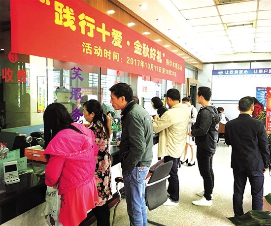 乘“踐行十愛·德耀甜城”春風(fēng),秉承“做好供水服務(wù)、提高服務(wù)品質(zhì)”之傳統(tǒng),今年來(lái),內(nèi)江市水務(wù)有限責(zé)任公司(以下簡(jiǎn)稱“水司”)推出了一系列“惠民、便民”服務(wù),希冀將溫暖傳遞到家家戶戶……  金秋十月,惠民萬(wàn)家  “請(qǐng)幫我預(yù)存800元……”“我要領(lǐng)口炒鍋……”10月11日上午9時(shí)許,“水司”玉溪路收費(fèi)廳里人潮涌動(dòng)、熱鬧非凡。  窗口前,預(yù)存水費(fèi)的用戶群整齊劃一地排著長(zhǎng)隊(duì);登記處,工作人員井然有序地發(fā)放禮品、征集“作風(fēng)效能建設(shè)征求意見表”;庫(kù)房?jī)?nèi),餐洗液、食用油、炒鍋等禮品完好裝箱存放,正“翹首以盼”地等待用戶前來(lái)認(rèn)領(lǐng)。  “惠”聚金秋,樂(lè)享好禮。據(jù)玉溪路收費(fèi)廳組長(zhǎng)周麗萍介紹,為感謝廣大用戶對(duì)城市供排水事業(yè)的長(zhǎng)期支持及幫助,“水司”特精心策劃、推出了為期21天的“金秋好禮”預(yù)存水費(fèi)活動(dòng)。即日起至10月31日,凡屬“水司”供水區(qū)域內(nèi)的生活用水戶(一表一戶),結(jié)清欠費(fèi)后預(yù)存相應(yīng)數(shù)額的水費(fèi),憑預(yù)存收據(jù),便可現(xiàn)場(chǎng)領(lǐng)取相應(yīng)的禮品回饋。  禮品為:預(yù)存200元,贈(zèng)送雕牌餐洗一桶或其他;預(yù)存400元,贈(zèng)送斑布生態(tài)竹紙一提或其他;預(yù)存600元,贈(zèng)送金龍魚葵花籽油(4L)一桶或其他;預(yù)存800元以上,贈(zèng)送蘇泊爾燉鍋一口或蘇泊爾炒鍋一口。  活動(dòng)一經(jīng)啟動(dòng),便獲得廣大用戶的熱烈反響?!敖裉焐衔?,前來(lái)預(yù)存水費(fèi)、領(lǐng)取禮品的用戶絡(luò)繹不絕?!敝茺惼颊f(shuō),截止到當(dāng)天10點(diǎn)半,僅玉溪路收費(fèi)廳參與活動(dòng)的用戶就突破了130人;而平安路、大千路、交通路、白馬鎮(zhèn)四處同步推行活動(dòng)的收費(fèi)廳,累計(jì)登記430余名參與用戶。  “前兩天,小區(qū)里都在沸沸揚(yáng)揚(yáng)地傳‘水司’將舉辦回饋活動(dòng)。”家住市中區(qū)甜城大道某小區(qū)的用戶張光華,今天特意抽空前來(lái)預(yù)存了800元水費(fèi),并領(lǐng)取了一口炒鍋。“繳水費(fèi)還能領(lǐng)禮品,這樣的好事我一定會(huì)在朋友圈大力宣傳,爭(zhēng)取讓身邊更多人知曉?!?/span>  左手一口燉鍋、右手一口炒鍋。預(yù)存1600元,抱得禮物歸,家住市中區(qū)臨江路某小區(qū)的用戶宋浩笑容滿面:“對(duì)于用水戶來(lái)說(shuō),這活動(dòng)真的‘接地氣’。”他希望,今后,“水司”能將類似的惠民傳統(tǒng)長(zhǎng)久地延續(xù)下來(lái)。  繳納水費(fèi) 不跑“冤枉路”  “今后您隨時(shí)隨地,只要用手機(jī)就可以繳費(fèi)了……”  近日,家住市中區(qū)臨江路528號(hào)的黃女士,一如既往地來(lái)到“水司”玉溪路收費(fèi)廳。當(dāng)她在排隊(duì)繳納水費(fèi)時(shí),“意外”地受到“水司”客戶服務(wù)部副經(jīng)理樊曉麗的熱情接待。  原來(lái),“水司”已與中國(guó)建設(shè)銀行網(wǎng)站(手機(jī)銀行)、中國(guó)農(nóng)業(yè)銀行網(wǎng)站(手機(jī)銀行)、中國(guó)工商銀行網(wǎng)站(手機(jī)銀行)、四川省農(nóng)村信用社網(wǎng)站(手機(jī)銀行)取得了合作,用戶登錄以上銀行網(wǎng)站個(gè)人銀行(之一),進(jìn)入水費(fèi)繳費(fèi)界面便可繳納水費(fèi)。  此外,“水司”還相繼開通了“中國(guó)電信翼APP”、“支付寶APP”繳費(fèi)方式,用戶登陸上述APP(之一),在首頁(yè)點(diǎn)擊進(jìn)入生活繳費(fèi)界面,也可繳納水費(fèi)。  經(jīng)過(guò)樊曉麗一番詳細(xì)講解、實(shí)際操作,不到20分鐘,黃女士便熟練地掌握了手機(jī)繳費(fèi)的“技能”?!拔椰F(xiàn)在50多歲了,每次繳費(fèi)跑來(lái)跑去,怪累人的?!彼呛堑卣f(shuō),“這下好了,今后再也不用跑‘冤枉路’了,這樣的服務(wù)太貼心了!”  “手機(jī)繳費(fèi)的服務(wù),已開通了一段時(shí)間了?!薄八尽笨蛻舴?wù)部負(fù)責(zé)人左海霞告訴記者,像這種“新”服務(wù),年輕人接受起來(lái)非常快?!暗心耆丝赡芫筒荒敲础?xí)以為?!恕!?/span>  為將這項(xiàng)便捷、優(yōu)質(zhì)、高效的服務(wù)推送到各類人群,滿足廣大用戶對(duì)方便用水的需求,自5月中旬以來(lái),“水司”便挑選了樊曉麗等8名優(yōu)秀服務(wù)員工,在每天繳費(fèi)的高峰期,分別派駐到東興區(qū)平安路收費(fèi)廳、大千路收費(fèi)廳以及市中區(qū)玉溪路收費(fèi)廳、交通路收費(fèi)廳,開展“代收水費(fèi)業(yè)務(wù)”專項(xiàng)宣傳活動(dòng)。  “截至目前,活動(dòng)的服務(wù)人群已達(dá)2000余人?!弊蠛O颊f(shuō),宣傳活動(dòng)將作為公司常態(tài)化工作,一直持續(xù)到今年年底。