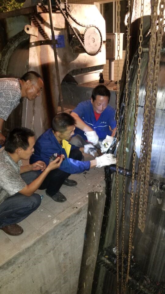 為保證國慶、中秋節(jié)日期間污水廠的正常運行,9月21日,污水廠組織人員對廠內(nèi)設(shè)備及進水泵坑進行維護清理。