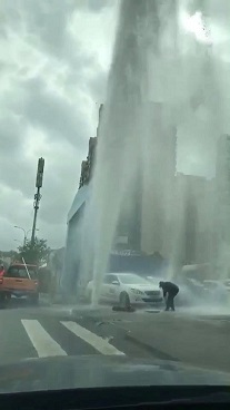 搶修人員到達(dá)現(xiàn)場(chǎng)后,發(fā)現(xiàn)消火栓已被撞斷,大量自來(lái)水噴涌而出,形成10多米高的水柱,附近道路積水嚴(yán)重,對(duì)附近學(xué)校人員的出行造成嚴(yán)重影響。搶修隊(duì)員在渾濁的閘閥井里摸索著關(guān)閉閥門,及時(shí)排除安全隱患,經(jīng)過(guò)近一個(gè)小時(shí)的搶修,11時(shí)許,完成搶修,恢復(fù)供水。