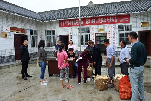 上午,吳書記一行在大橋村開展“以購代捐”活動,收購貧困戶農副產品(地瓜),并現場發(fā)放收購資金。
